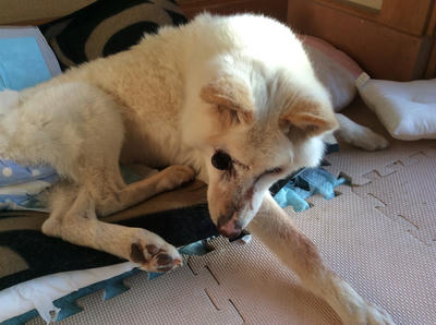 老犬は処方された薬が体質にあったようで、時々立ち上がってはフラつくぐらいに回復しました。